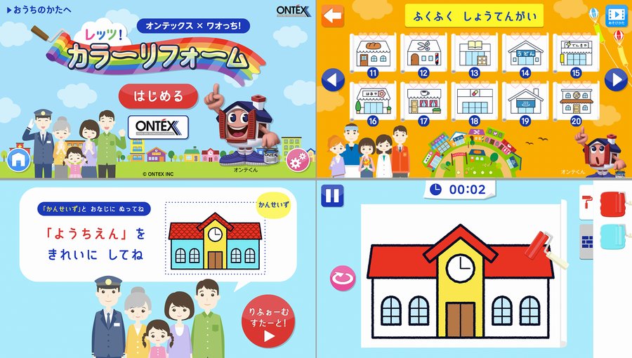 子ども向け知育アプリ「ワオっち!」と外壁・屋根リフォームの「オンテックス」がコラボ。「ワオっち!ランド」に、スピードぬりえ「レッツ!カラーリフォーム!」が登場。2018年7月27日(金)配信開始。