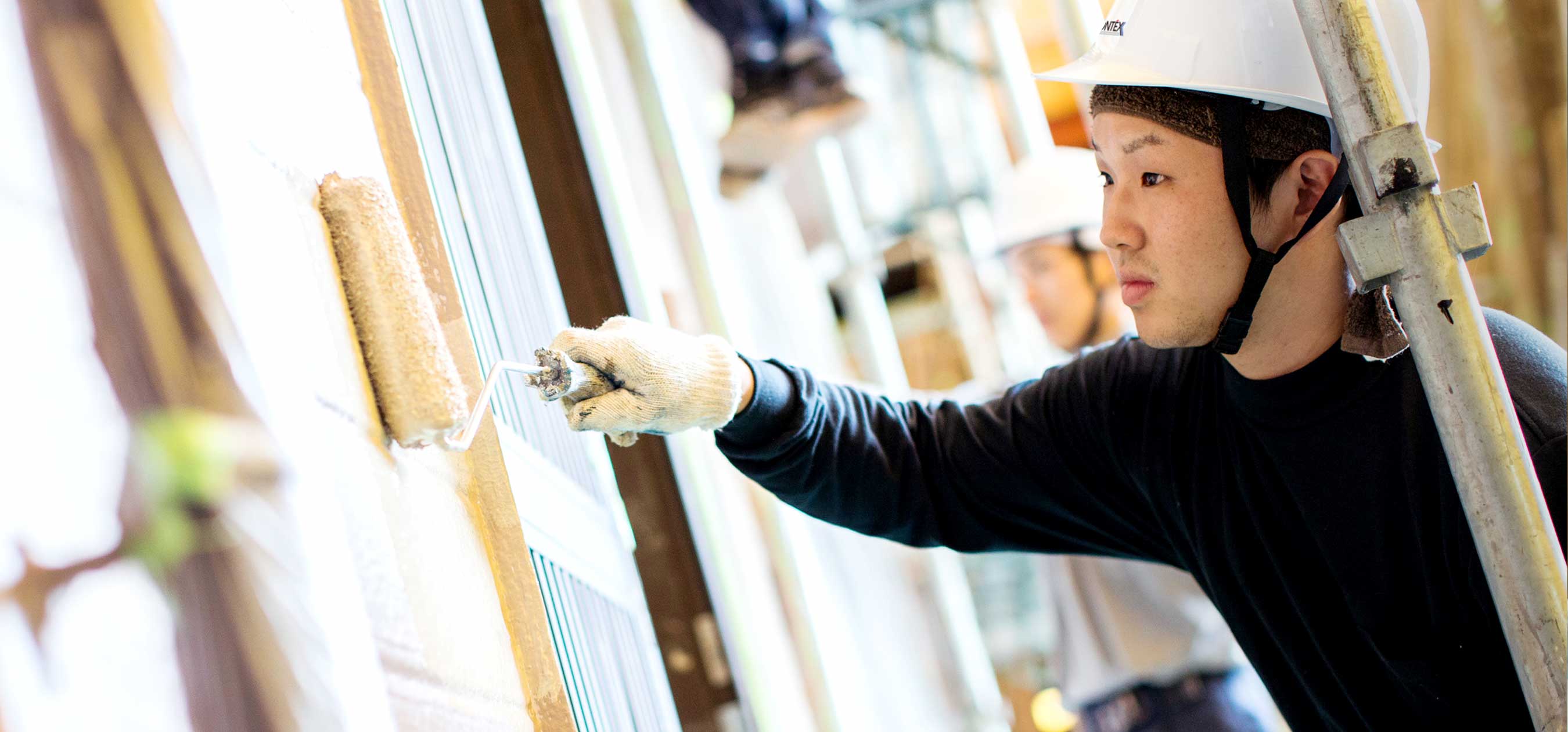 施工については、「オンテックス・テクニカルスクール」でたしかな技術を身につけた技能士を中心に実施。「足場組み立て等作業主任者」「塗装技術者」などの資格取得支援なども行う同スクールでは、全現場での自社技能士比率100%を目標に、これまで数多くの技能士を輩出しています。
