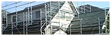 地上から手の届かない部分を工事するために設けるもので、鋼管や丸太を組んで足場板を渡します。