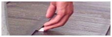 雨水排出や通気性の確保をする溝を塗膜で塞がないように縁切り部材を差込みます。