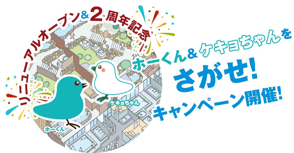 2周年を祝して「ホーくん&ケキョちゃんを探せ!」キャンペーン開催しています。